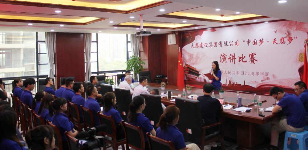 9月27日下午,天恩建設(shè)集團(tuán)有限公司舉辦了“中國夢·天恩夢”主題演講比賽。本次活動旨在慶祝中華人民共和國70周年華誕,唱響愛國主旋律,培植理想信念,深耕企業(yè)文化,展現(xiàn)天恩風(fēng)采。特邀潛江市資深專家、學(xué)者擔(dān)任評委,公司領(lǐng)導(dǎo)和全體員工參與了此次活動。