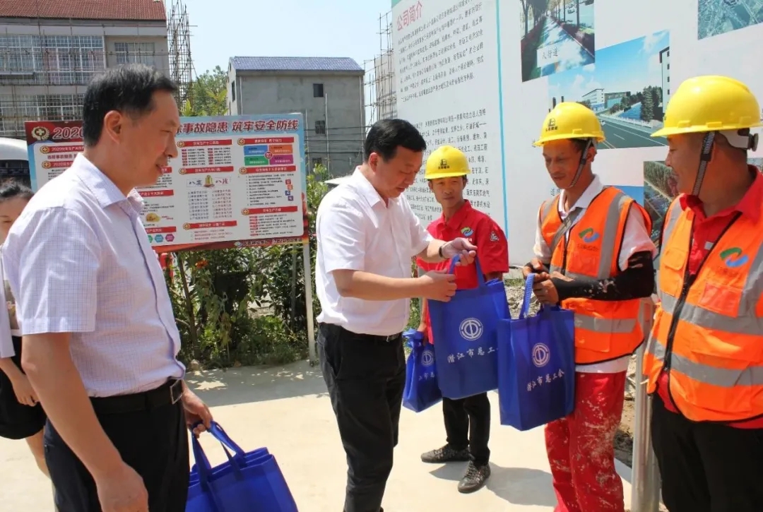 8月18日,潛江市市委書記吳祖云,市委副書記、市長龔定榮等一行到潛陽路東延景觀提升建設(shè)項(xiàng)目現(xiàn)場看望慰問奮戰(zhàn)在一線的施工人員,并送上了夏季清涼慰問品。