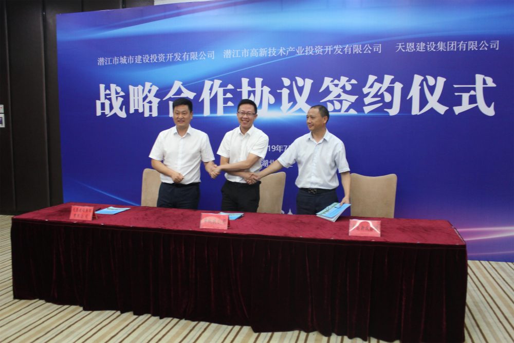 2019年7月3日上午,天恩建設集團有限公司與潛江市城市建設投資開發(fā)有限公司、潛江市高新技術產(chǎn)業(yè)投資開發(fā)有限公司三方共同合作,在七喜國際大酒店舉行裝配式建筑戰(zhàn)略合作框架協(xié)議簽約儀式。
